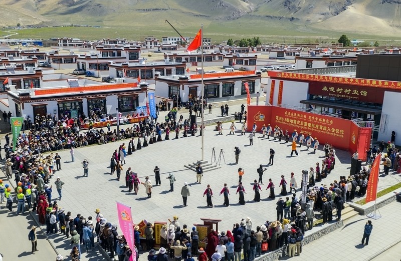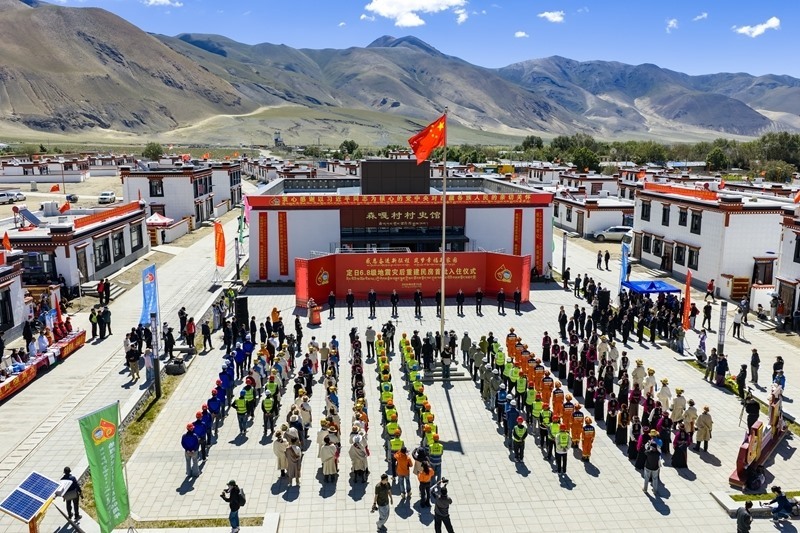 8月15日在西藏定日縣森嘎村拍攝的“定日6.8級地震災(zāi)后恢復(fù)重建民房首批入住儀式”(無人機(jī)照片)。