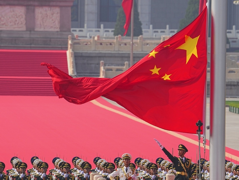 9月3日,紀(jì)念中國(guó)人民抗日戰(zhàn)爭(zhēng)暨世界反法西斯戰(zhàn)爭(zhēng)勝利80周年大會(huì)在北京隆重舉行。這是國(guó)旗護(hù)衛(wèi)隊(duì)官兵護(hù)衛(wèi)著五星紅旗行進(jìn)。