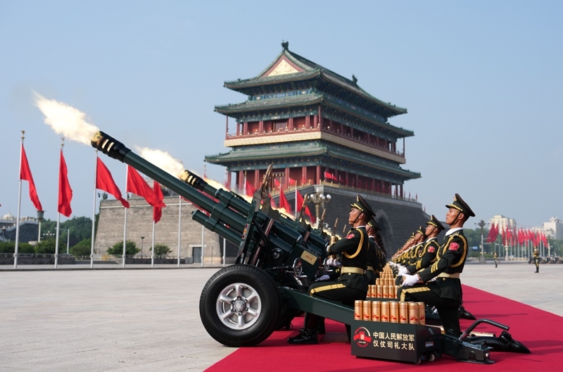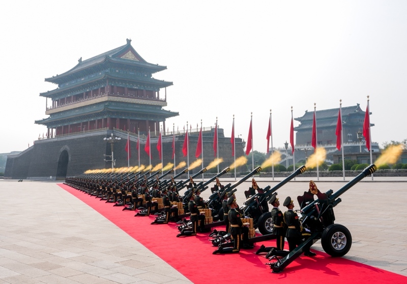 9月3日,紀(jì)念中國(guó)人民抗日戰(zhàn)爭(zhēng)暨世界反法西斯戰(zhàn)爭(zhēng)勝利80周年大會(huì)在北京隆重舉行。這是禮炮在天安門廣場(chǎng)鳴響。