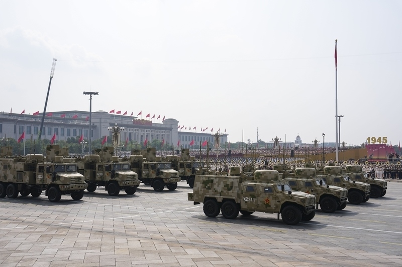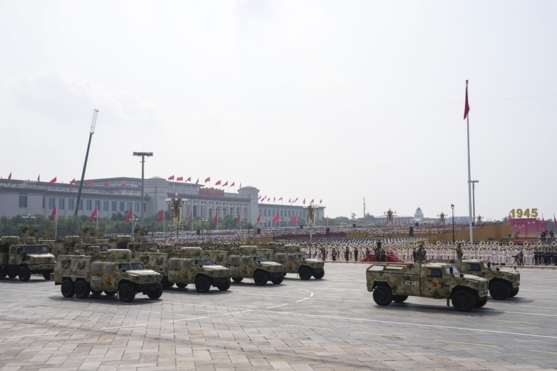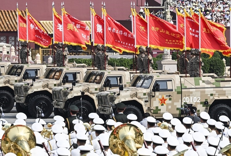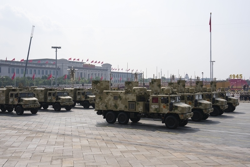 9月3日,紀念中國人民抗日戰(zhàn)爭暨世界反法西斯戰(zhàn)爭勝利80周年大會在北京隆重舉行。這是信息支援方隊接受檢閱。