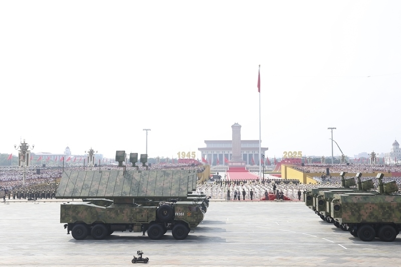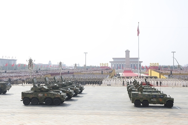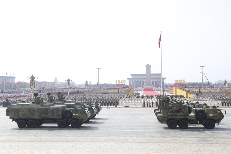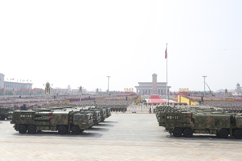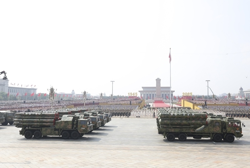 9月3日,紀(jì)念中國(guó)人民抗日戰(zhàn)爭(zhēng)暨世界反法西斯戰(zhàn)爭(zhēng)勝利80周年大會(huì)在北京隆重舉行。這是對(duì)空抗擊方隊(duì)接受檢閱。