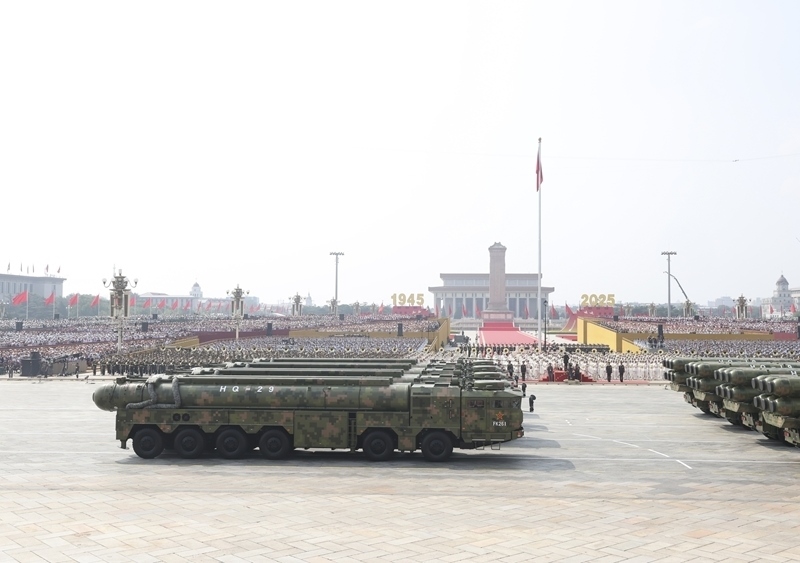 9月3日,紀(jì)念中國(guó)人民抗日戰(zhàn)爭(zhēng)暨世界反法西斯戰(zhàn)爭(zhēng)勝利80周年大會(huì)在北京隆重舉行。這是反艦導(dǎo)彈方隊(duì)接受檢閱。