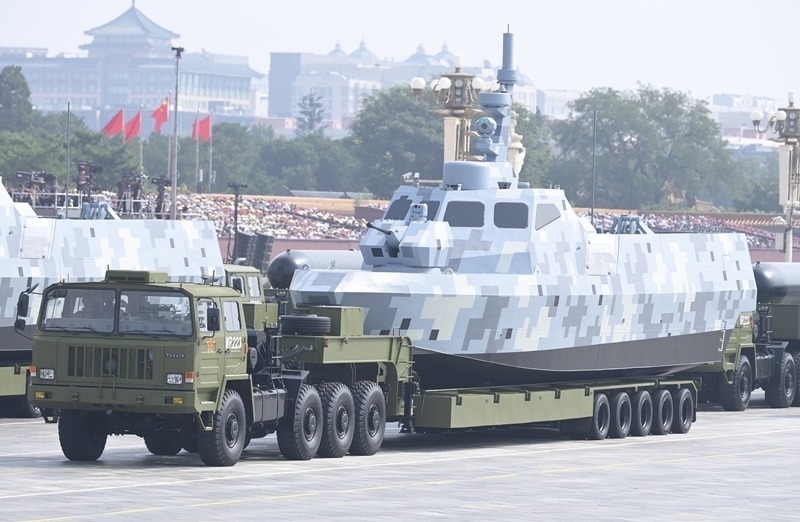 9月3日,紀(jì)念中國(guó)人民抗日戰(zhàn)爭(zhēng)暨世界反法西斯戰(zhàn)爭(zhēng)勝利80周年大會(huì)在北京隆重舉行。這是海上無(wú)人作戰(zhàn)方隊(duì)通過(guò)天安門廣場(chǎng)。