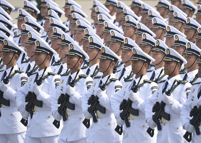 9月3日,紀(jì)念中國(guó)人民抗日戰(zhàn)爭(zhēng)暨世界反法西斯戰(zhàn)爭(zhēng)勝利80周年大會(huì)在北京隆重舉行。這是海軍方隊(duì)通過(guò)天安門廣場(chǎng)。