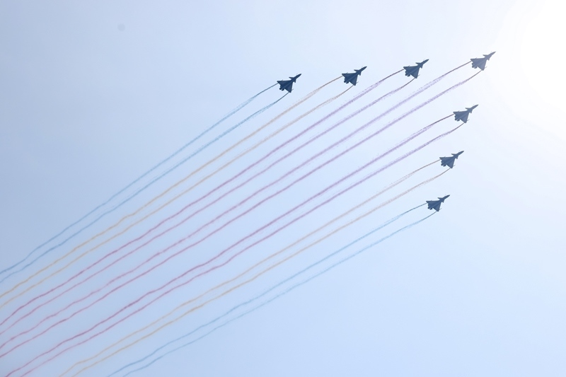 9月3日,紀念中國人民抗日戰(zhàn)爭暨世界反法西斯戰(zhàn)爭勝利80周年大會在北京隆重舉行。這是空中梯隊接受檢閱。