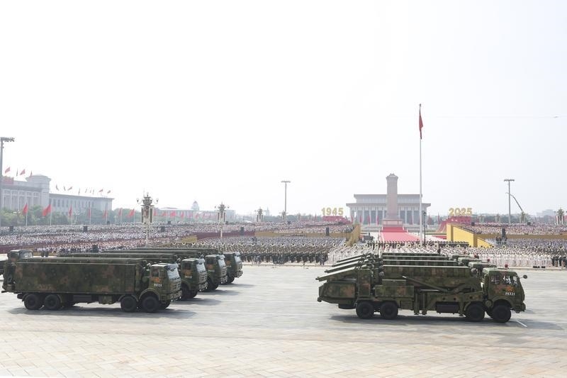 9月3日,紀(jì)念中國人民抗日戰(zhàn)爭暨世界反法西斯戰(zhàn)爭勝利80周年大會在北京隆重舉行。這是反艦導(dǎo)彈方隊接受檢閱。