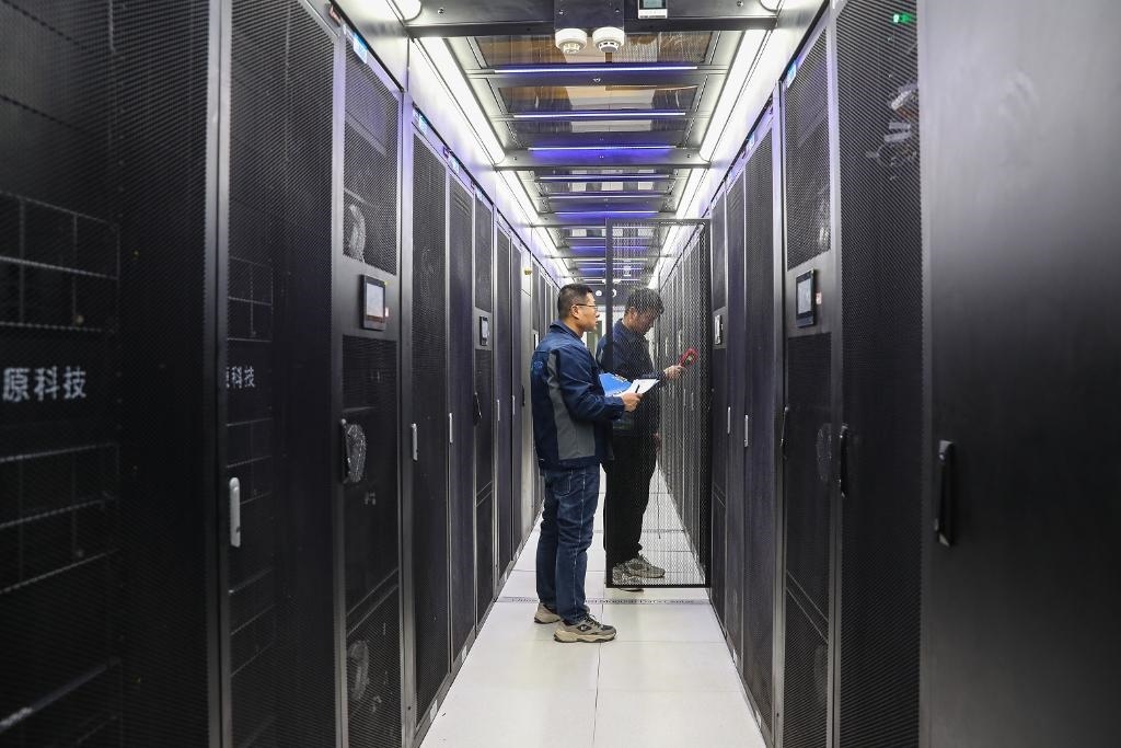 2025年8月23日,中聯(lián)數(shù)據(jù)集團(tuán)山西公司工作人員在操作電子平臺。新華社記者 柴婷 攝