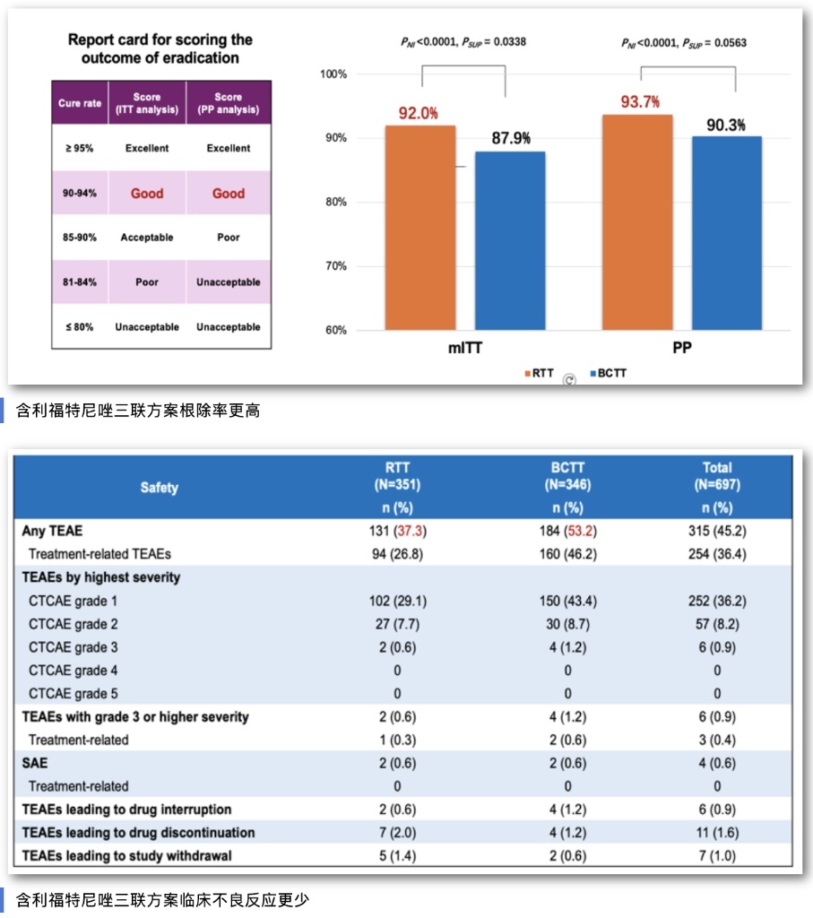 這項(xiàng)在中國(guó)開(kāi)展的多中心、隨機(jī)、雙盲、陽(yáng)性對(duì)照研究,納入700例幽門(mén)螺桿菌感染初治患者。宋志強(qiáng)介紹,利福特尼唑是我國(guó)自主研發(fā)的全球首創(chuàng)新型分子實(shí)體藥物,專門(mén)針對(duì)幽門(mén)螺桿菌感染研發(fā)。相關(guān)基礎(chǔ)和臨床研究結(jié)果均顯示,幽門(mén)螺桿菌對(duì)該藥物普遍敏感,最小抑菌濃度低,有效克服幽門(mén)螺桿菌高耐藥問(wèn)題,而且表現(xiàn)出良好的安全性。