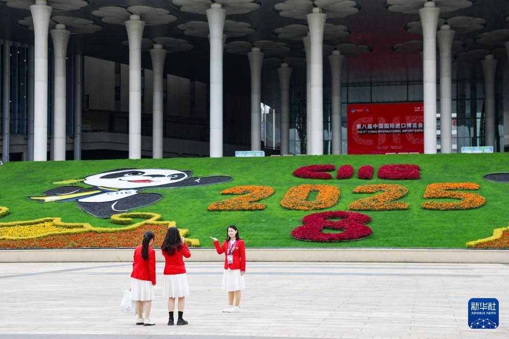 這是11月4日在第八屆進(jìn)博會(huì)舉辦場(chǎng)地——國(guó)家會(huì)展中心(上海)拍攝的進(jìn)博會(huì)宣傳標(biāo)識(shí)。