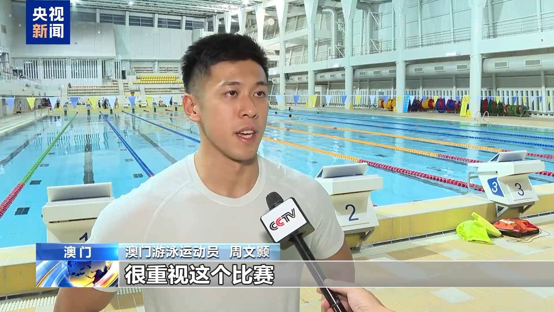 澳門游泳運動員 周文顥:我把全運會當作是今年最重要的比賽,很重視這個比賽,然后比賽水平也很高。