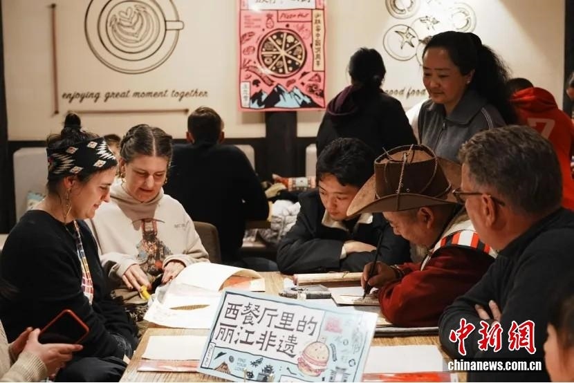 2025年3月9日,云南麗江正值納西族傳統(tǒng)節(jié)日三多節(jié),非遺傳承人和鈞與旅居麗江的民眾開展東巴文化交流活動(dòng)。 中新社發(fā) 顧一航 攝