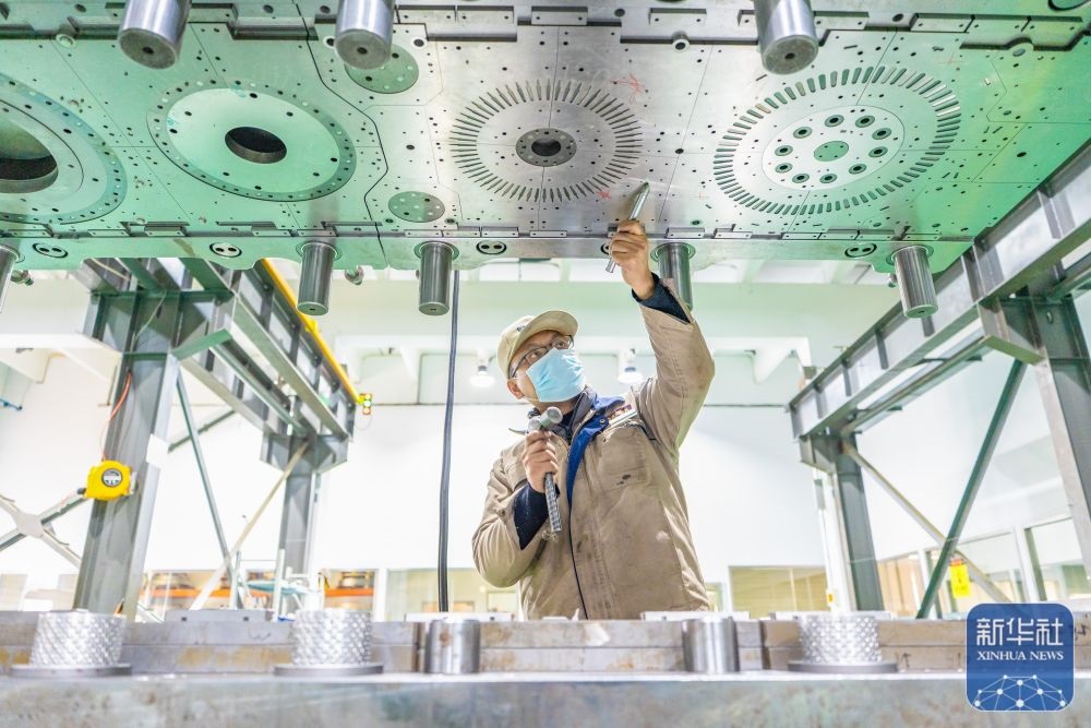 ↑ 12月15日,在位于江蘇省南通市通州區(qū)興仁鎮(zhèn)的江蘇富松模具科技有限公司車間內(nèi),工人趕制模具產(chǎn)品訂單。新華社發(fā)(翟慧勇攝)
