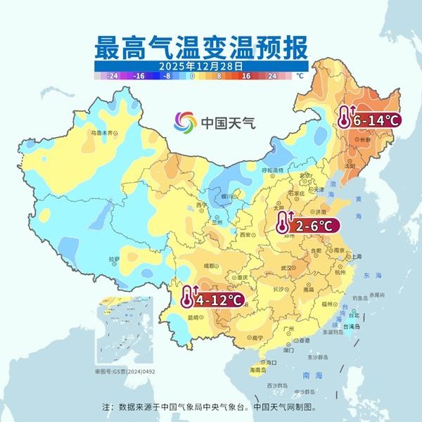 這場年尾超級大回暖正在席卷我國大部地區(qū),并將持續(xù)至29日。明后天,回暖幅度和范圍進(jìn)一步升級,北方地區(qū)明天氣溫普遍達(dá)到高點(diǎn),南方地區(qū)將在后天(29日)前后迎來過程氣溫高點(diǎn)。其中明天,最高氣溫0℃線將同期少見地挺進(jìn)東北,并北抬至吉林中部,黃淮南部到江南普遍在15℃以上,華南也將重返20℃以上,短袖有了重新出場的機(jī)會(huì)。