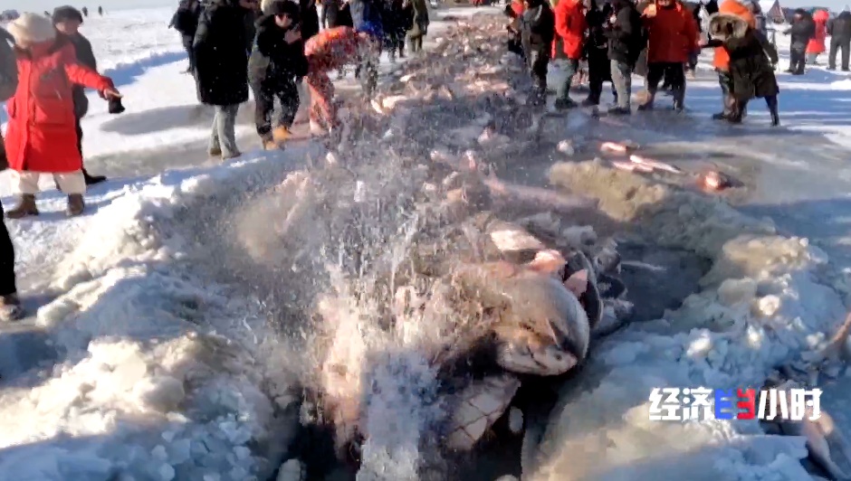 為了吸引游客,查干湖還推出私人訂制捕魚、冰下盲盒等新項目。100米長的掛網(wǎng),游客組隊拉拽,親手捕魚后,可以直接送進(jìn)后廚做成鐵鍋燉。