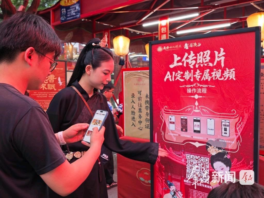 游客在長安十二時辰主題街區(qū)體驗AI產品。(資料圖)