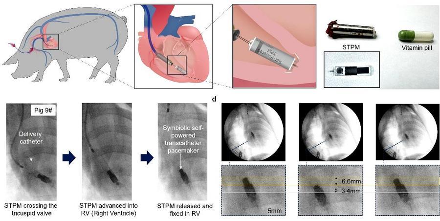 歷經(jīng)近七年聯(lián)合攻關(guān),中國(guó)科學(xué)院大學(xué)(簡(jiǎn)稱“國(guó)科大”)、清華大學(xué)、清華大學(xué)北京清華長(zhǎng)庚醫(yī)院、北京大學(xué)、北京大學(xué)第三醫(yī)院、中國(guó)醫(yī)學(xué)科學(xué)院阜外醫(yī)院等多家單位組成的研究團(tuán)隊(duì),在該領(lǐng)域取得重要進(jìn)展——成功研發(fā)出膠囊尺寸的微型共生型自供電無(wú)導(dǎo)線心臟起搏器。近日,相關(guān)研究成果刊載于權(quán)威期刊《自然-生物醫(yī)學(xué)工程》上。