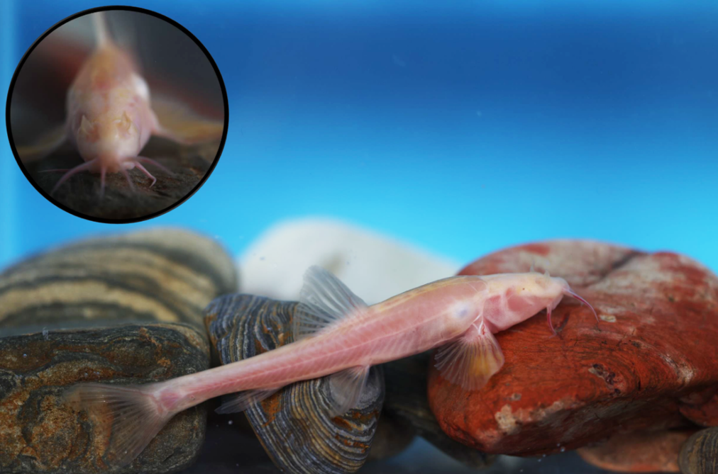 “納雍盲高原鰍”被發(fā)現(xiàn)于貴州省納雍縣張家灣鎮(zhèn)的一處地下溶洞中。作為典型的穴居魚類,該物種演化出鮮明的洞穴適應(yīng)性特征:個體體形偏小,鱗片已完全退化消失,身體呈透明淡粉色;眼睛高度退化,部分個體僅殘留細小的黑色眼點;同時,其附肢適度延長、感覺系統(tǒng)發(fā)達,以此適應(yīng)黑暗、封閉的地下環(huán)境。通過形態(tài)學對比與分子生物學檢測證實,它被確認為從未被記載的新種。