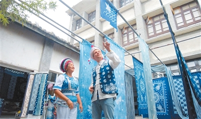 英國(guó)籍視頻博主斯圖爾特·維金在云南大理體驗(yàn)白族扎染技藝。吳桐 攝