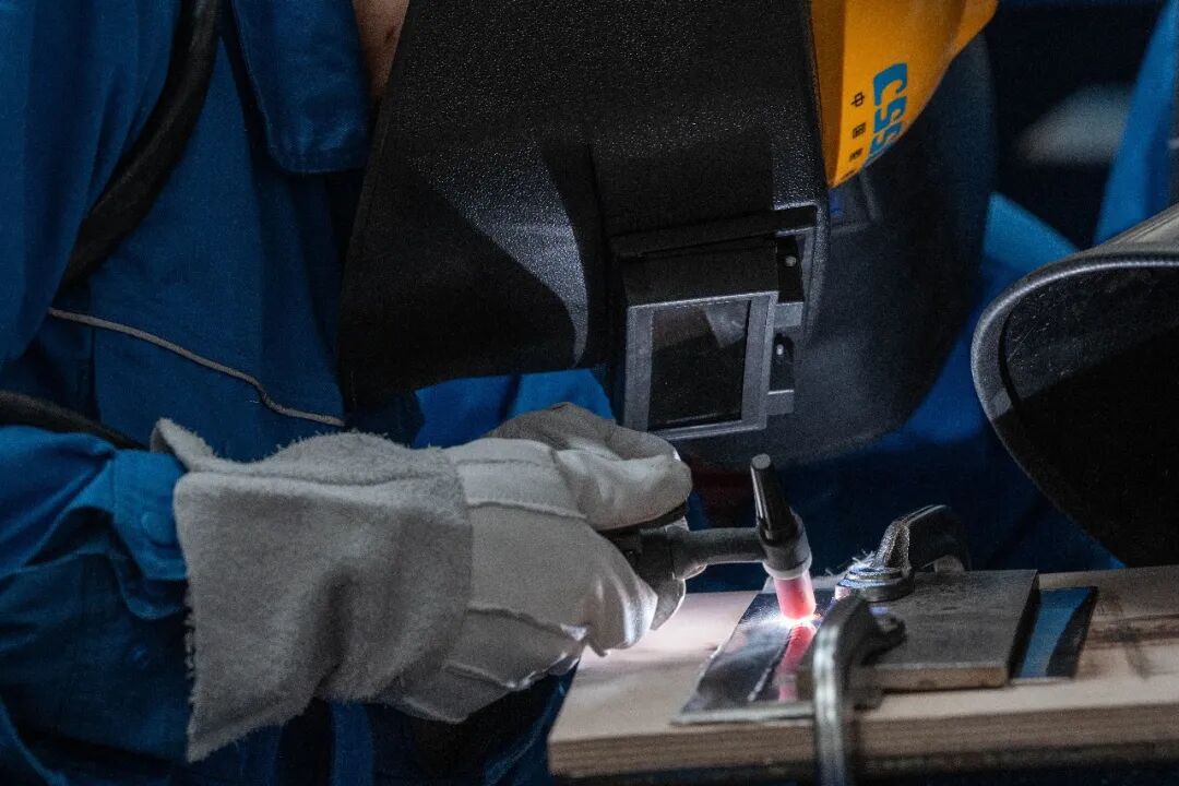 2026年4月1日,滬東中華造船殷瓦鋼焊接培訓(xùn)車間內(nèi),新入職的工人正在苦練殷瓦鋼焊接技藝。 攝影 萬全/人民畫報