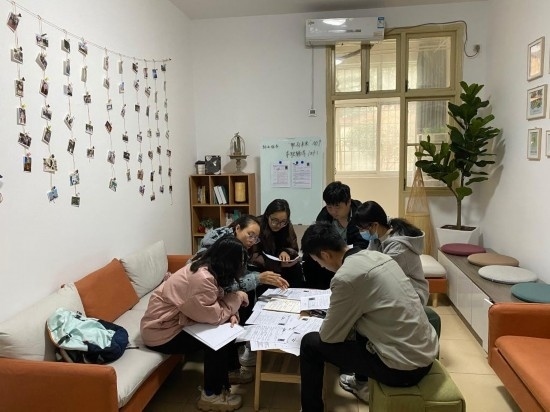 3月21日,華中農(nóng)業(yè)大學薈園學生社區(qū)的指導老師幫助學生修改簡歷。新華社記者李偉 攝