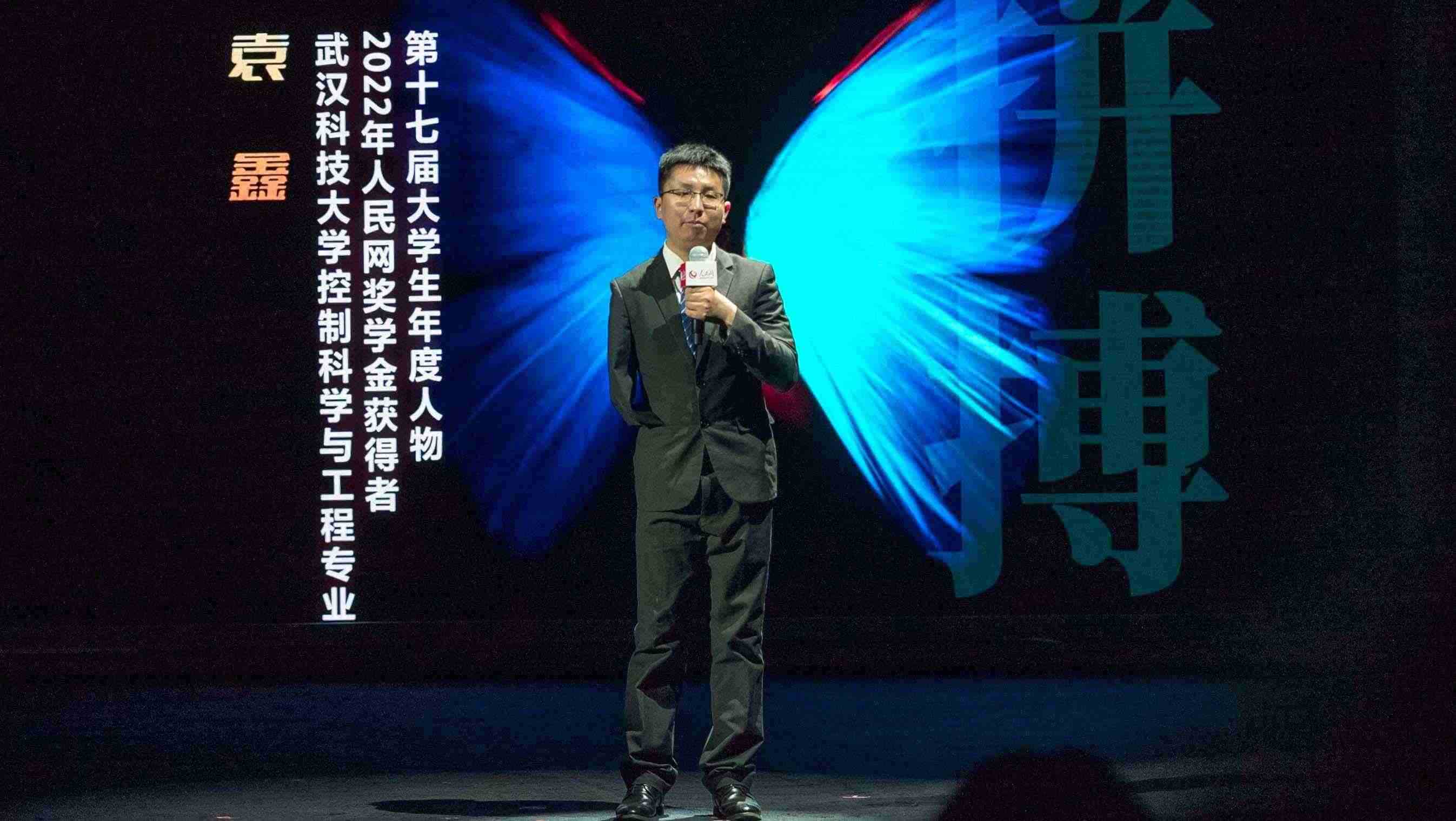 第十七屆大學(xué)生年度人物、2022年度人民網(wǎng)獎(jiǎng)學(xué)金一等獎(jiǎng)獲得者武漢科技大學(xué)控制科學(xué)與工程專(zhuān)業(yè)博士生袁鑫分享自己的故事。實(shí)習(xí)生韓華良 攝