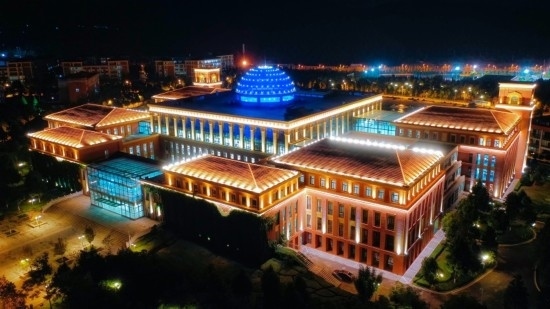 夜晚燈光亮起,閃耀的穹頂輪廓映在黑暗中,最上方的星空熠熠生輝,在館藏約為227萬(wàn)冊(cè)圖書(shū)館仰止樓,遨游書(shū)海思緒翩飛,如游宇宙繁星,廣闊無(wú)垠。