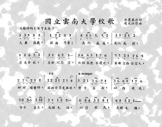 圖熊慶來(lái)作詞、趙元任作曲的國(guó)立云南大學(xué)校歌。云南大學(xué)供圖