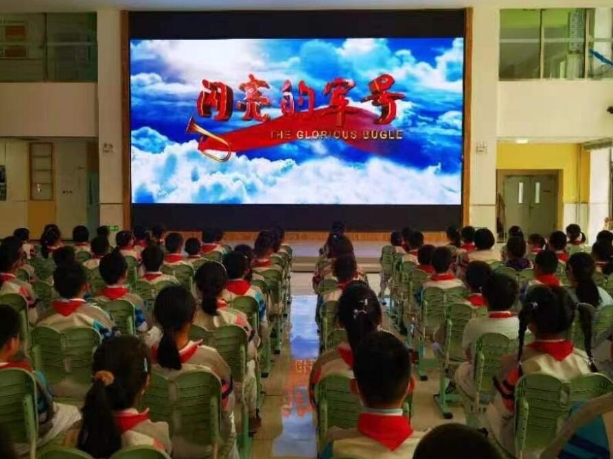 代表團為北京市八一學(xué)校小學(xué)部學(xué)生放映電影《閃亮的軍號》