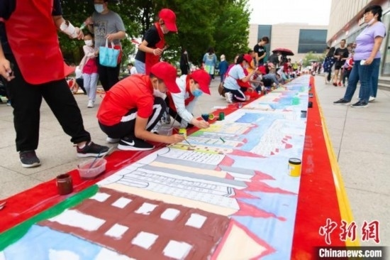 “六一”兒童節(jié)系列活動期間,天津開展少年兒童百米長卷繪制活動。王在御 攝