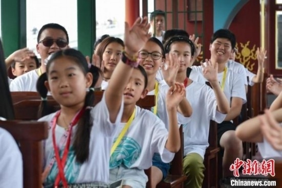 8月9日,2023海外華裔青少年夏季研學營進入第三天,海內外營員走進頤和園,乘坐畫舫游昆明湖。