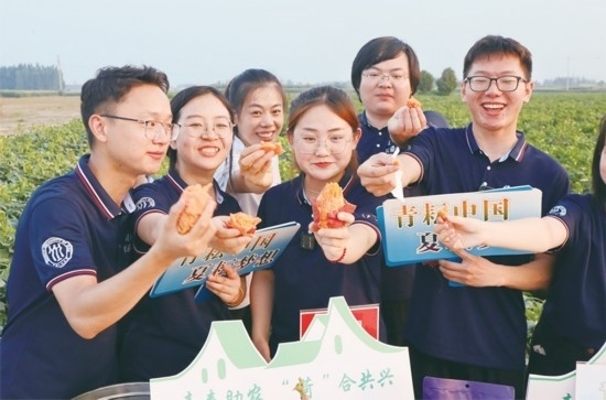 圖為2023年暑期,中國人民大學(xué)博士生服務(wù)團(tuán)在山東菏澤圍繞“人才產(chǎn)業(yè)融合發(fā)展賦能鄉(xiāng)村振興路徑探索”課題進(jìn)行調(diào)研,并開展“青耘中國·夏耘夢想”公益助農(nóng)直播活動。 中國人民大學(xué)供圖