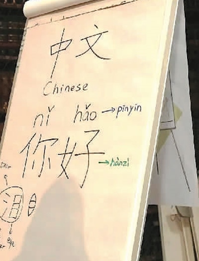 愛(ài)爾蘭科克大學(xué)孔子學(xué)院的國(guó)際中文教師為學(xué)生們講授漢字的筆記。