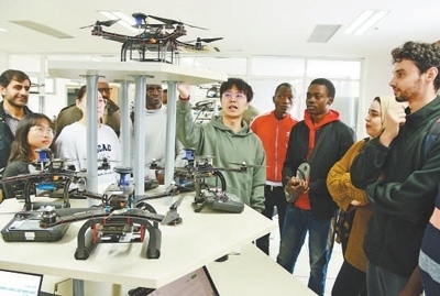 江蘇大學(xué)第四屆計(jì)算機(jī)文化節(jié)上,外國留學(xué)生在了解無人機(jī)功能和運(yùn)行原理。石玉成攝(影像中國)