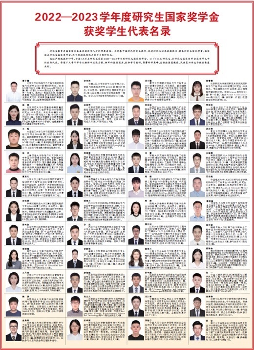 經(jīng)過嚴(yán)格選拔和評審,全國4.5萬名研究生榮獲2022—2023學(xué)年度研究生國家獎學(xué)金。以下100名研究生,是研究生國家獎學(xué)金獲獎學(xué)生中的優(yōu)秀代表。希望廣大青年學(xué)子從榜樣中汲取力量,樹牢科技報國志,刻苦學(xué)習(xí)鉆研,勇攀科學(xué)高峰,在推進強國建設(shè)、民族復(fù)興偉業(yè)中綻放青春光彩。