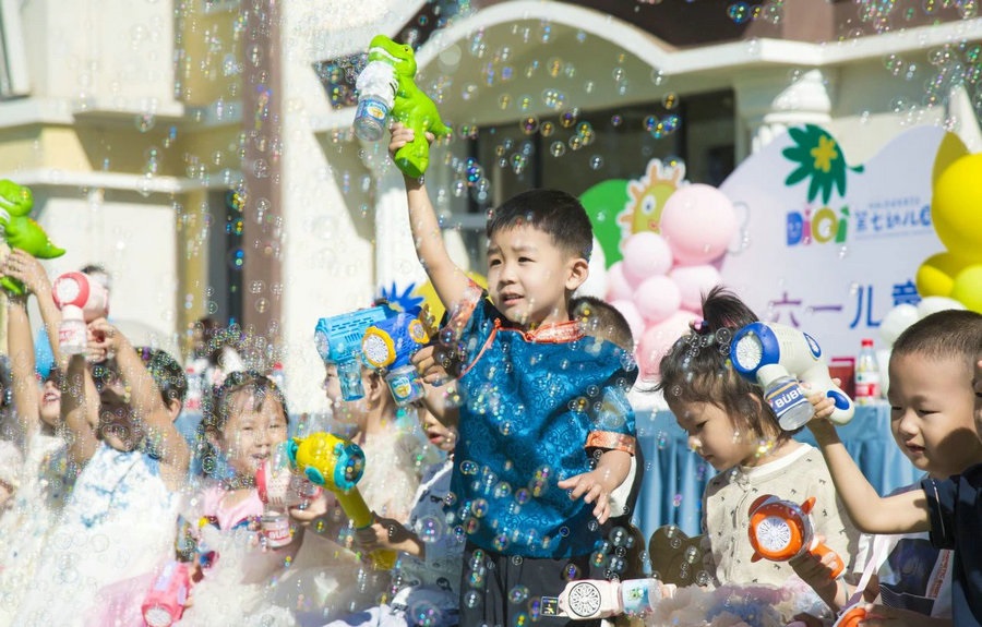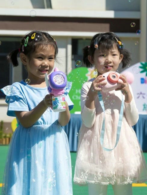小朋友沉浸在泡泡的童話世界里