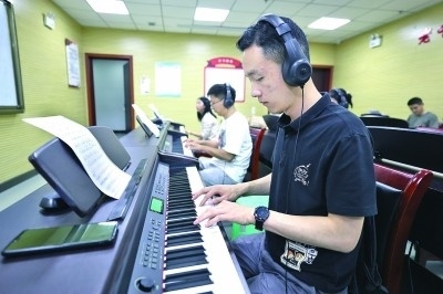 貴州省貴陽(yáng)市觀山湖區(qū)青年夜校的電子琴課堂。新華社發(fā)