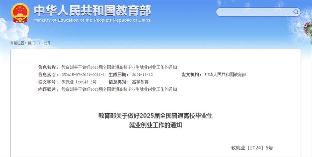 教育部實施2025屆全國普通高校畢業(yè)生就業(yè)創(chuàng)業(yè)促進和服務(wù)體系建設(shè)行動