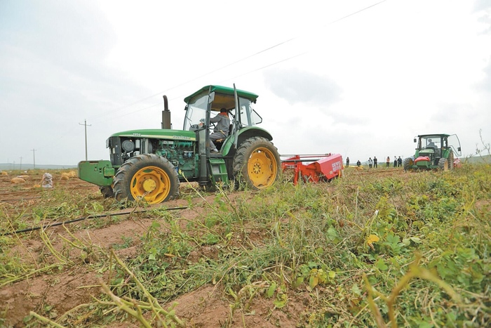 近日,在烏蘭察布市察右后旗白音察干鎮(zhèn)建設(shè)村馬鈴薯種植基地,見到該村連營農(nóng)業(yè)機械合作社負(fù)責(zé)人郝軍時,他正忙得不亦樂乎。據(jù)了解,今年馬鈴薯銷售價格可觀,他們的合作社迎來了又一個豐收年。
