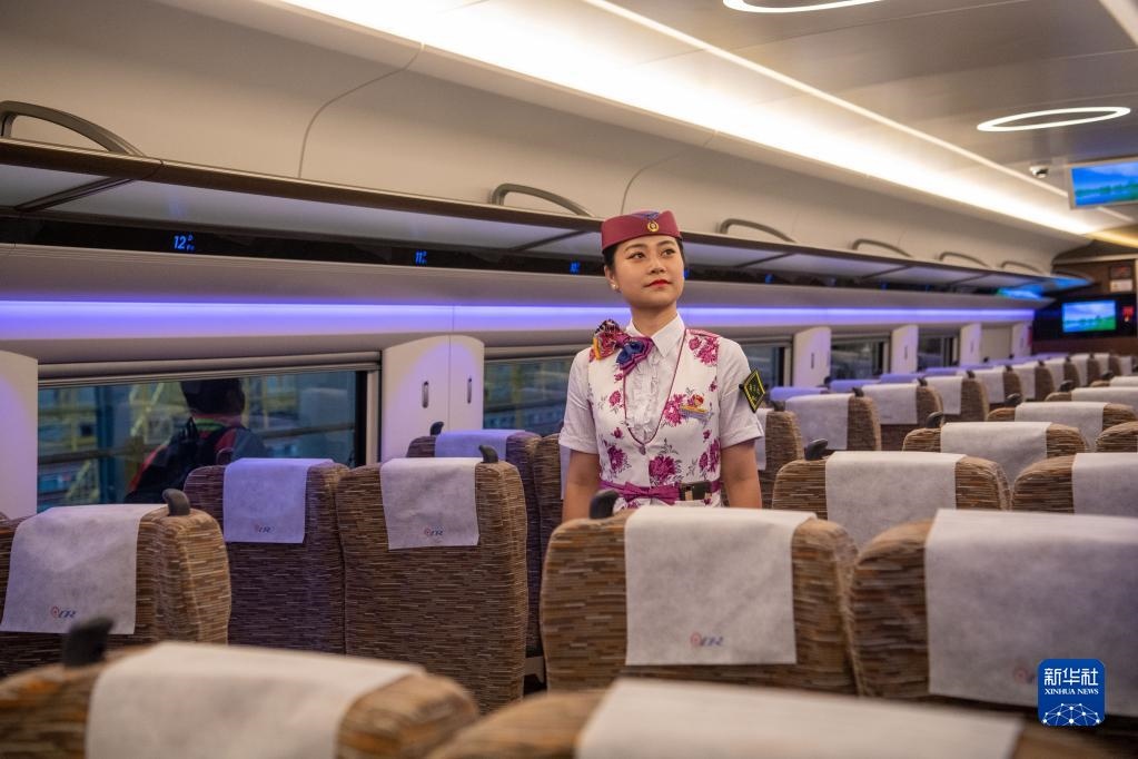2022年6月20日,鄭渝高鐵首發(fā)列車(chē)G52次列車(chē)動(dòng)車(chē)組人員正在等待乘客上車(chē)。新華社記者 陳青冰 攝