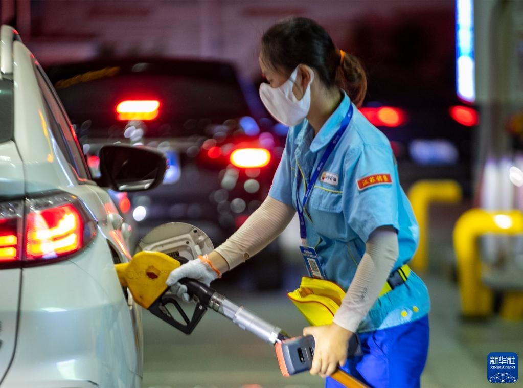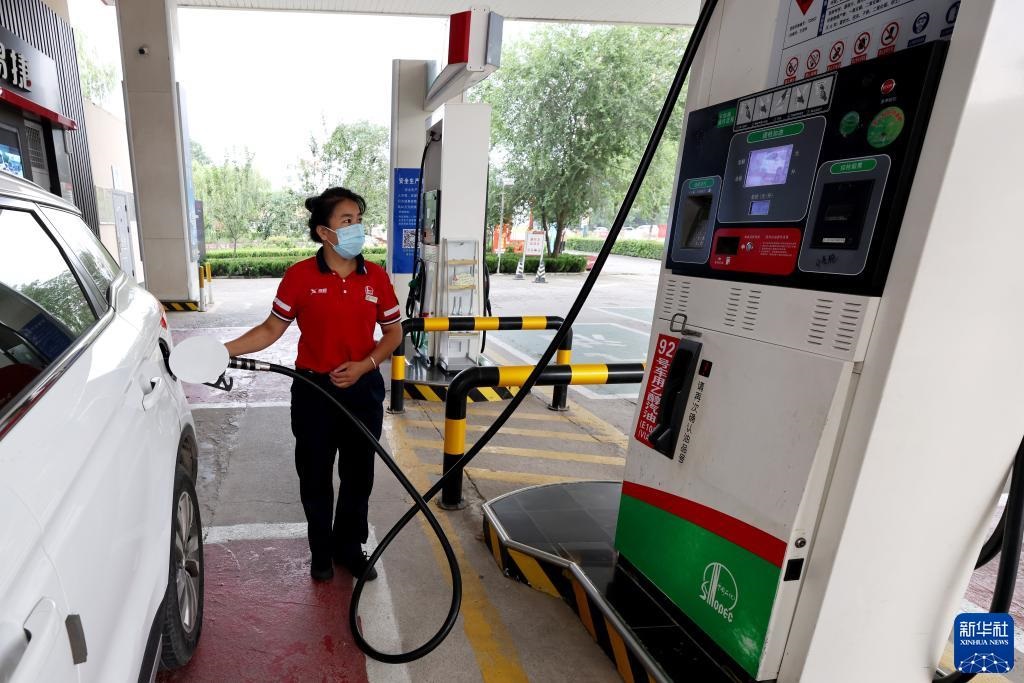 8月9日,江蘇無(wú)錫一加油站工作人員給汽車加油。新華社發(fā)(還月亮 攝)