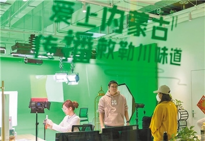 走進(jìn)呼和浩特市金橋電子商務(wù)產(chǎn)業(yè)園二樓的“愛上內(nèi)蒙古正能量網(wǎng)紅孵化基地”,首先映入眼簾的,是擺滿興安盟大米、燕麥米、高原杏仁露等產(chǎn)品的內(nèi)蒙古味道展臺(tái)。這里,既是內(nèi)蒙古味道走出內(nèi)蒙古的一個(gè)起點(diǎn),更是像張舟一樣的內(nèi)蒙古“網(wǎng)紅”們夢(mèng)想開始的地方。