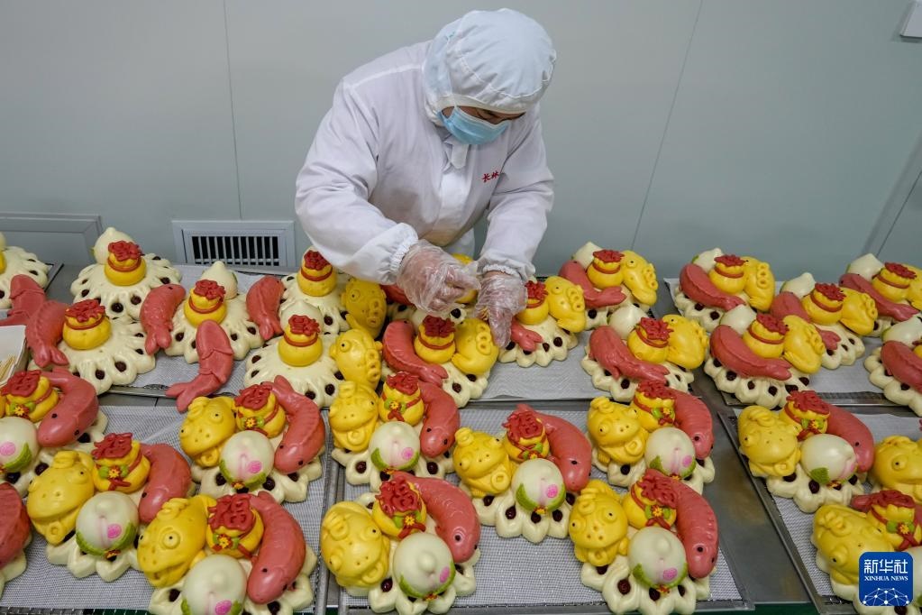 2月17日,威海長(zhǎng)林生態(tài)農(nóng)業(yè)有限公司員工清點(diǎn)即將發(fā)運(yùn)的花餑餑產(chǎn)品。新華社記者 朱崢 攝