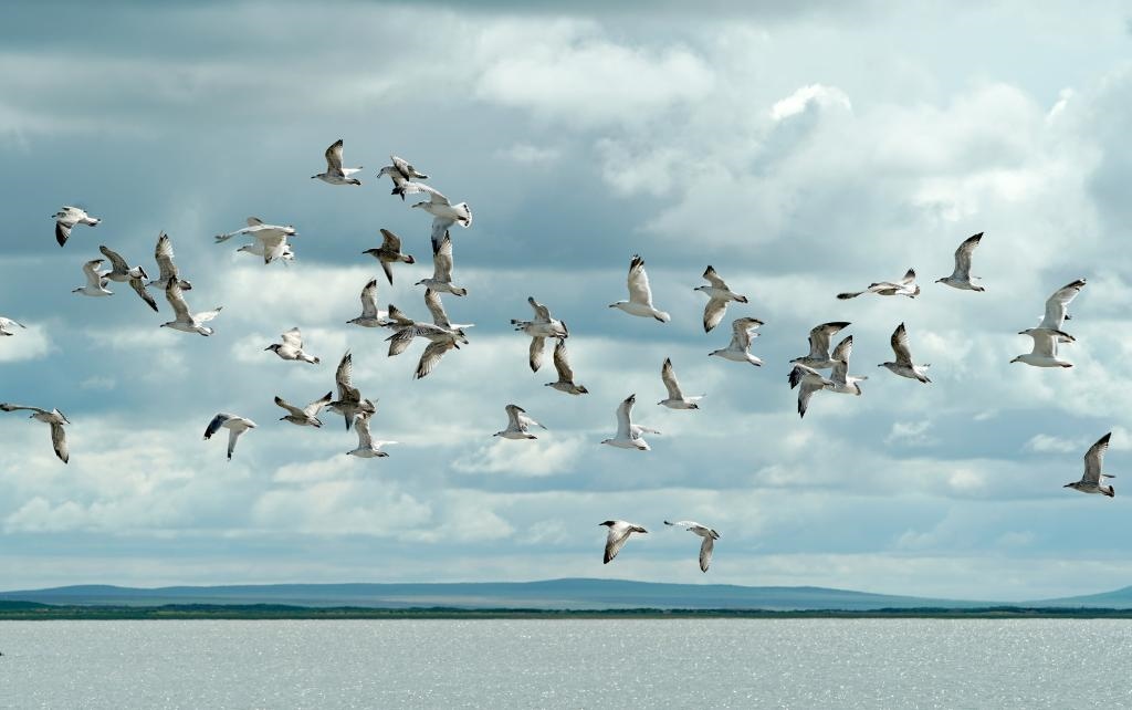2019年8月28日,呼倫湖上水鳥(niǎo)翔集。新華社記者 陳建力 攝