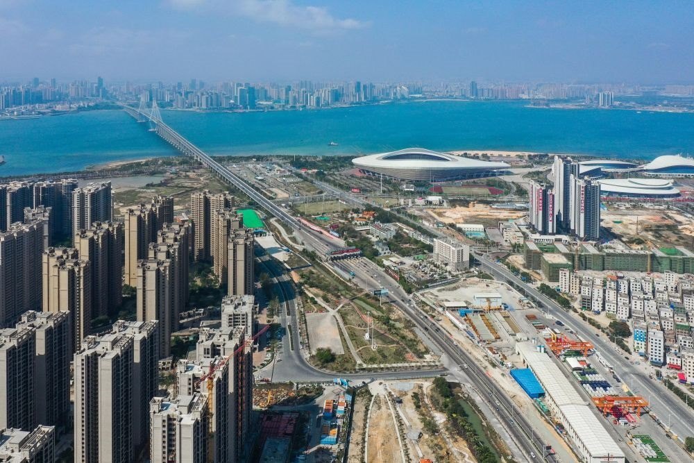 2月28日,廣湛鐵路湛江灣海底隧道盾構(gòu)區(qū)間“過(guò)海穿城”(無(wú)人機(jī)照片)。新華社記者 劉大偉 攝