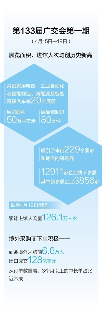 時隔3年,廣州琶洲,廣交會全面恢復(fù)線下辦展。作為中國外貿(mào)的晴雨表和風(fēng)向標(biāo),本屆廣交會展覽總面積增至150萬平方米,線下參展企業(yè)約3.5萬家。
