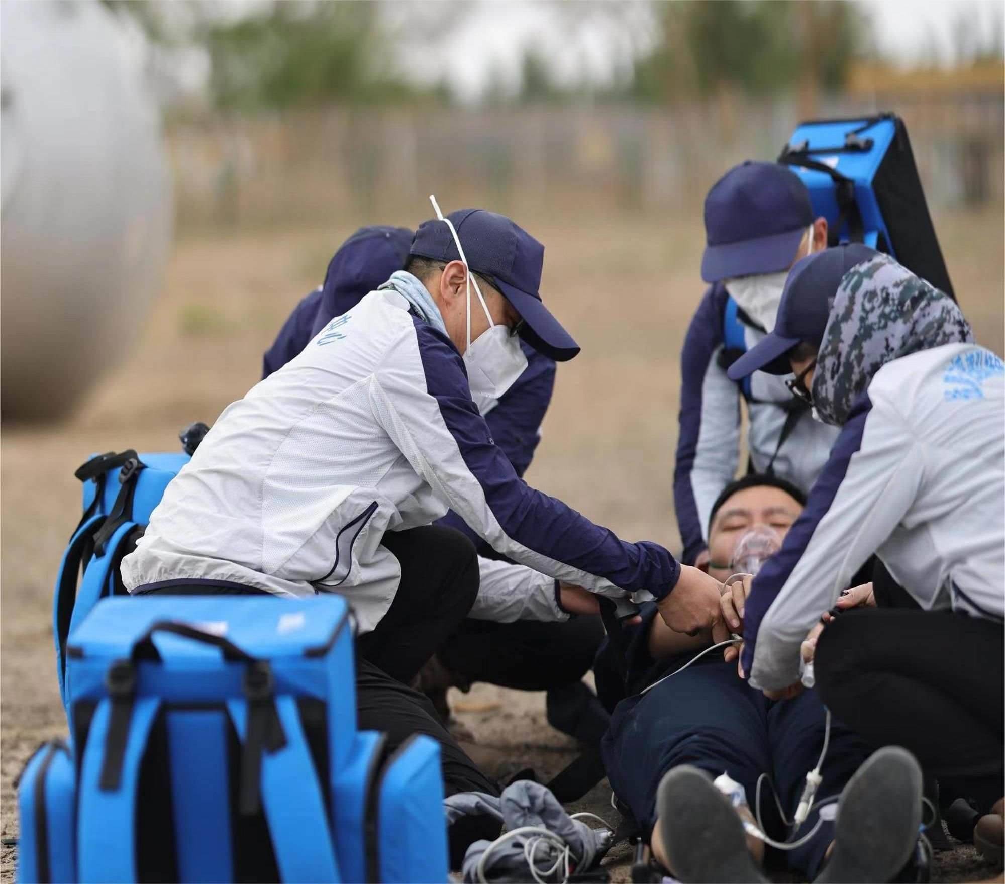 “習(xí)主席指出,打仗在某種意義上講就是打保障。作為醫(yī)療救護隊,保障航天員的生命安全就是打勝仗,只要存在0.01%的危險,我們就必須做到100%的準備?!鄙裰圯d人飛行任務(wù)醫(yī)療救護隊隊長顧建文介紹道。主著陸場涵蓋沙漠、丘陵、湖泊、戈壁等復(fù)雜地形,為順利完成任務(wù),率隊到達著陸場的這些天,顧建文一刻也沒有休息。他帶領(lǐng)醫(yī)療隊員乘坐直升機機動1800公里,飛越巴丹吉林沙漠,全面考察地形地貌,細致完善救治方案,實地調(diào)研后支醫(yī)院應(yīng)急醫(yī)療準備情況。