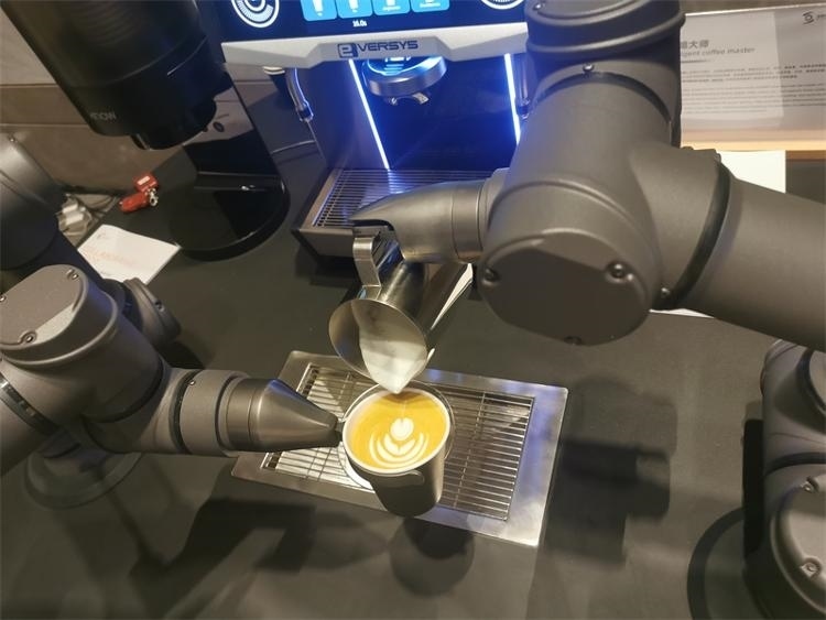 磨粉、過濾、注水、沖泡、拉花……短短75秒,智能咖啡大師就憑借著兩只靈活又穩(wěn)重的機械臂,制作出一杯帶拉花圖案的香濃咖啡?!拔覀兊臋C械臂拉花都是由咖啡大師調教的,很精準,如果說有時候人可能存在失誤的情況,那么機器人不會?!卞鄄┥綎|智能機器人有限公司調試工程師崔玉坤告訴記者,這臺機器目前可以做出4個品類6個花型的拉花效果,后期可以支持在線升級和擴充。