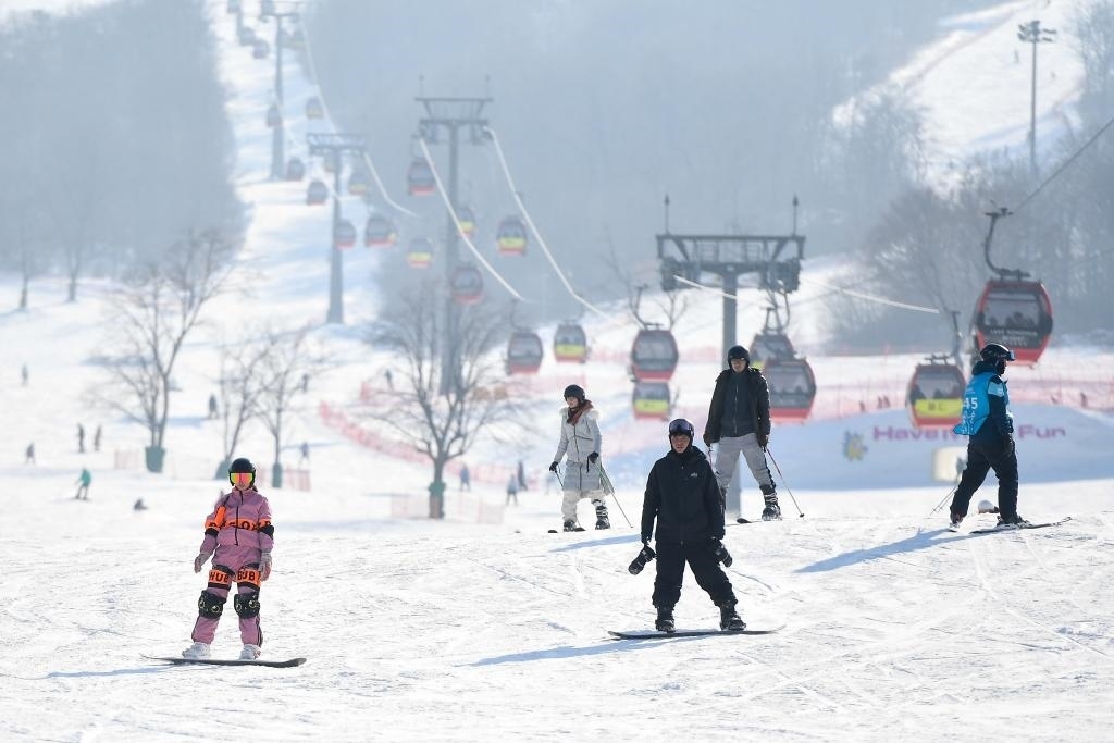 大年初二,吉林省吉林市北大湖滑雪度假區(qū)內(nèi),滑雪愛好者踏著雪板,沿著剛剛投入運營的64條嶄新雪道飛馳而下。