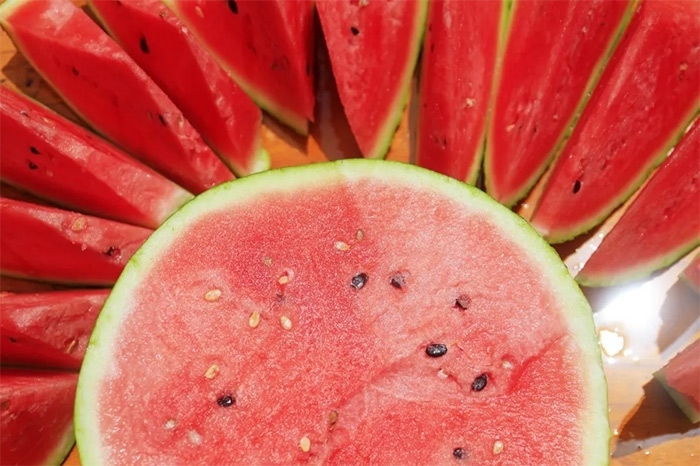 瓜瓤鮮紅色無籽、脆沙瓤