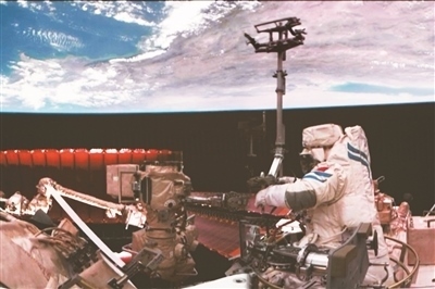 神舟十八號(hào)航天員李聰在空間站組合體艙外作業(yè)。新華社發(fā)